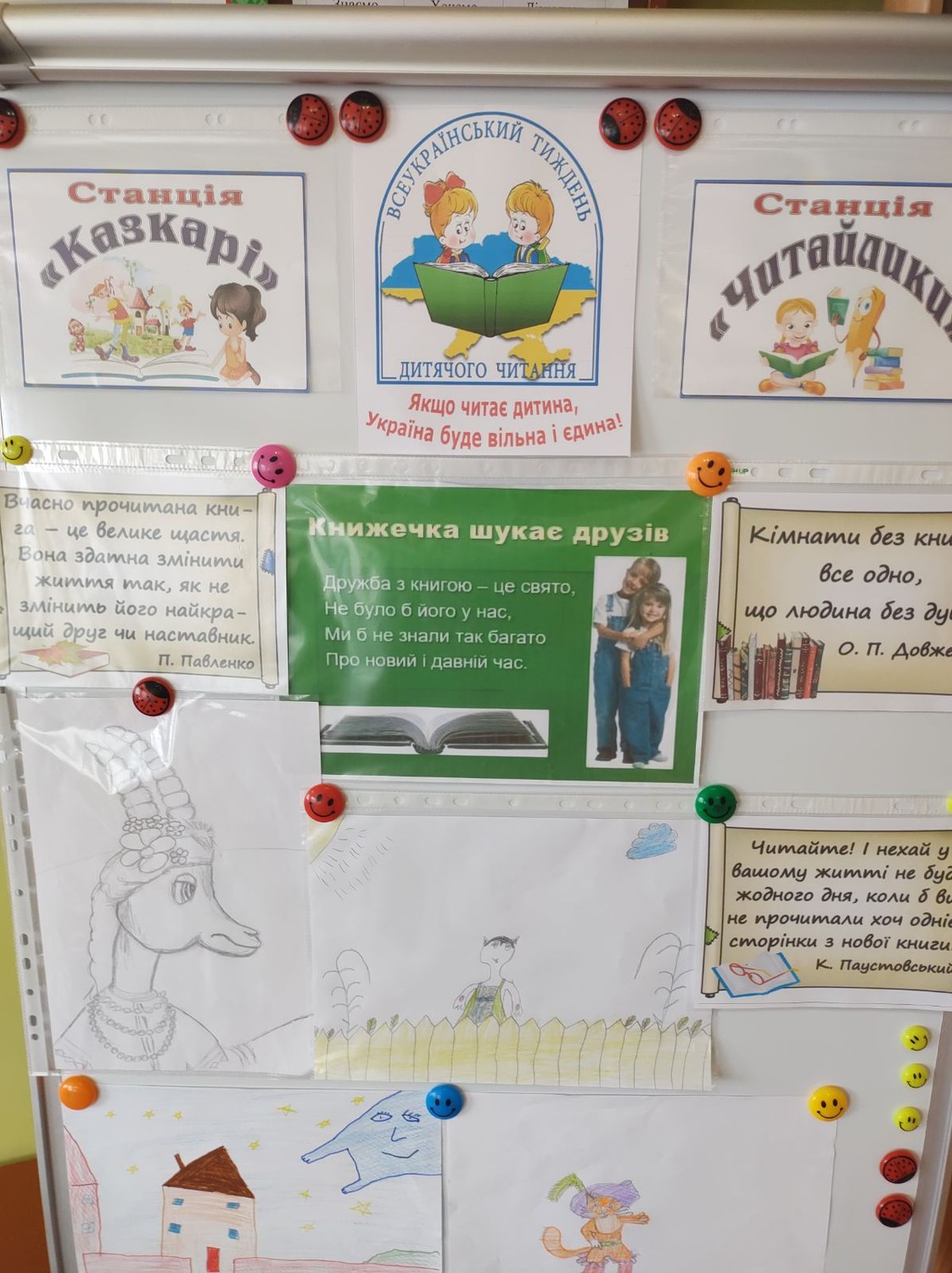Цікаво й захопливо проходить Всеукраїнський тиждень дитячого читання, який розпочався виставкою ,,Книжкові перлини - для кожної дитини.'' Сьогодні з другокласниками провели літературно - художній конкурс ,,Мій улюблений казковий герой'' та вікторину ,,З якої казки?''
