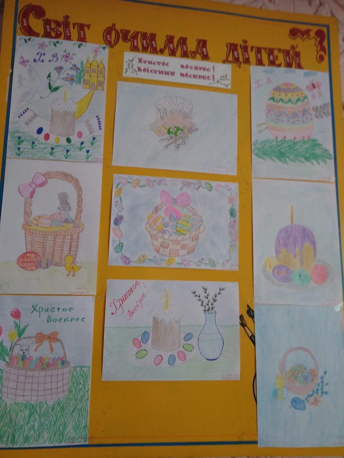 З нагоди великого прийдешнього християнського свята Воскресіння Христового у школі відбулася виставка малюнків "Барви Великодня -2021". Організатор виставки вчитель образотворчого мистецтва Мельничук С.В. Різними техніками та засобами школярі передали величність та радість Пасхальної події - Воскресіння Христового. Кожен малюнок заслуговує особливої уваги. Від них йде велике тепло і світло.